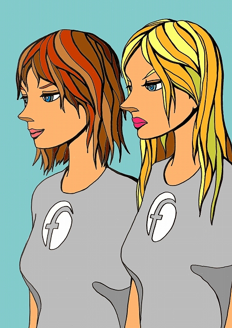 この時モデルをイメージしたんだが、髪の色がイエローかブラウンで悩んだんだ。結局、両方決着がつかず、こうなったんだが、この適当なコンセプトや絵の配置どう?かなりいーかげんだろぉ(笑)